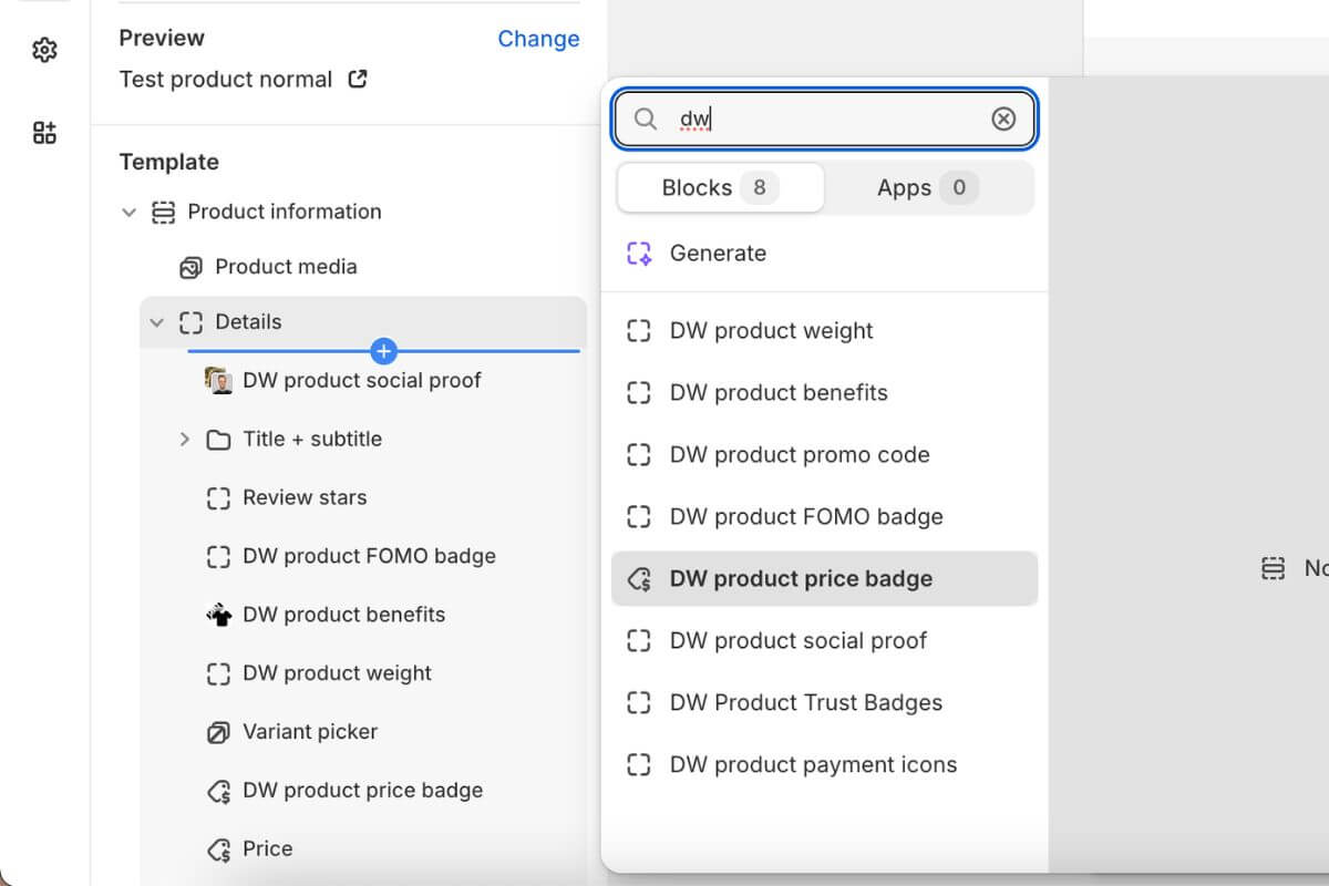 For all new block-based themes like Horizon, Savor, Atelier, Ritual & Vessel, you can insert my product blocks via drag & drop in seconds.