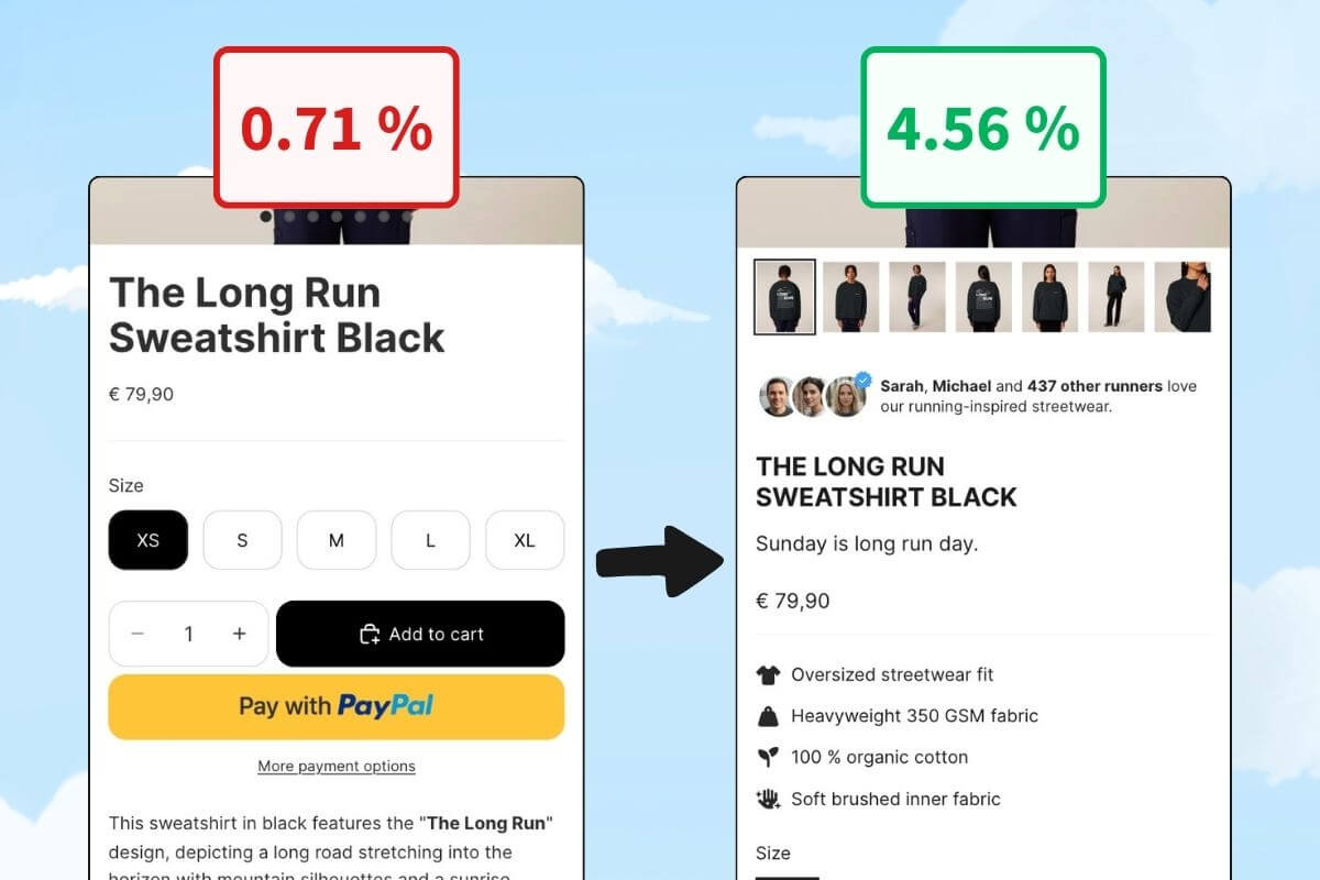 All sections and blocks can be customized individually per product. While this can be done using separate product templates in Shopify, in most cases that’s not even necessary - because you can dynamically adjust text, images, and content through metafields or metaobjects. This lets you create unique layouts and content for each product with maximum flexibility, without duplicating templates.
